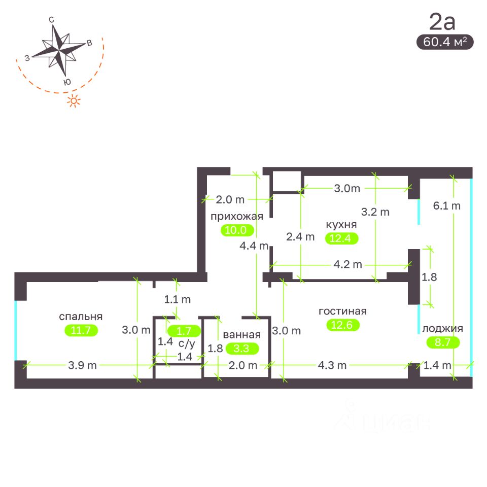 Общая площадь60,4 м²