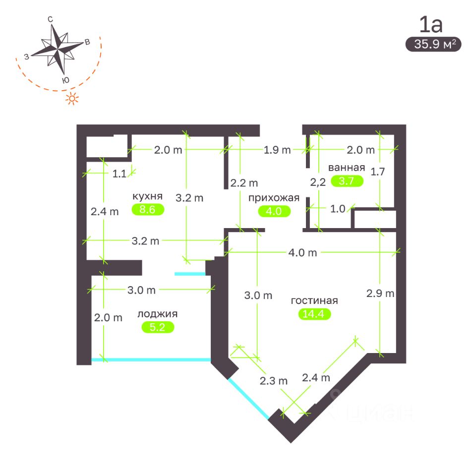 Общая площадь35,9 м²