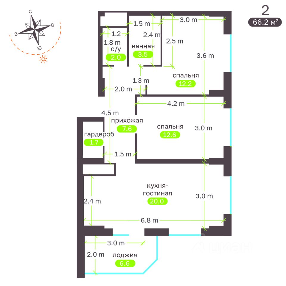 Общая площадь67,1 м²