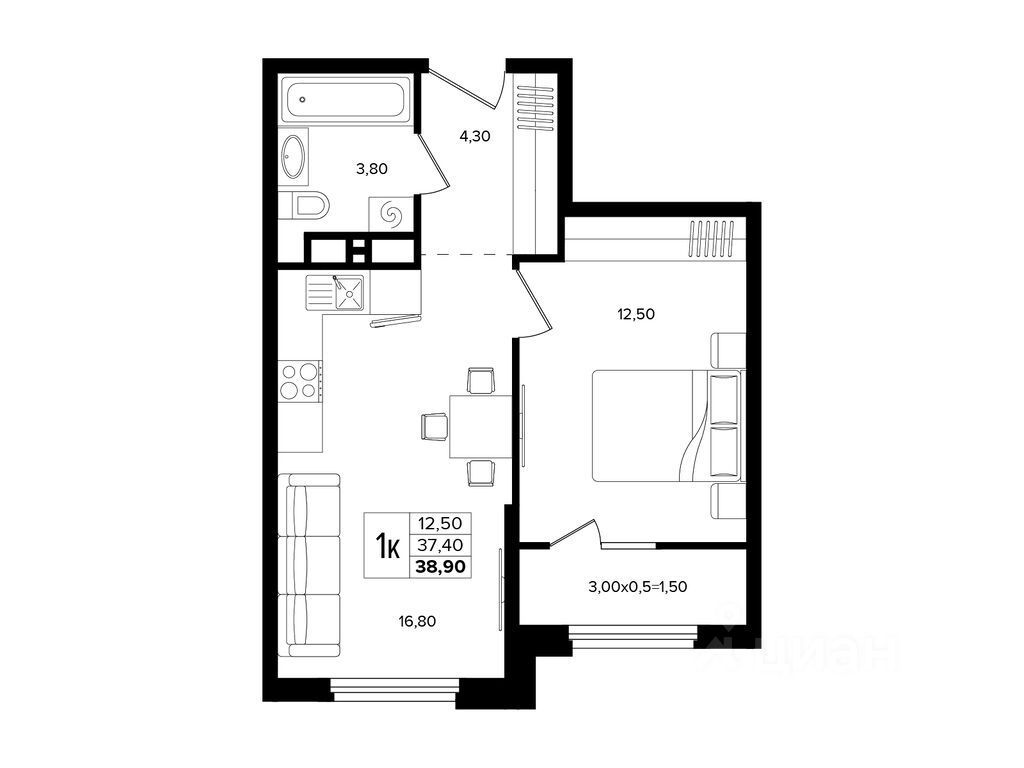 Общая площадь38,9 м²