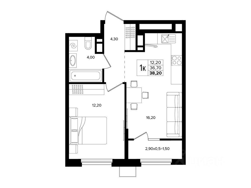 Общая площадь38,2 м²