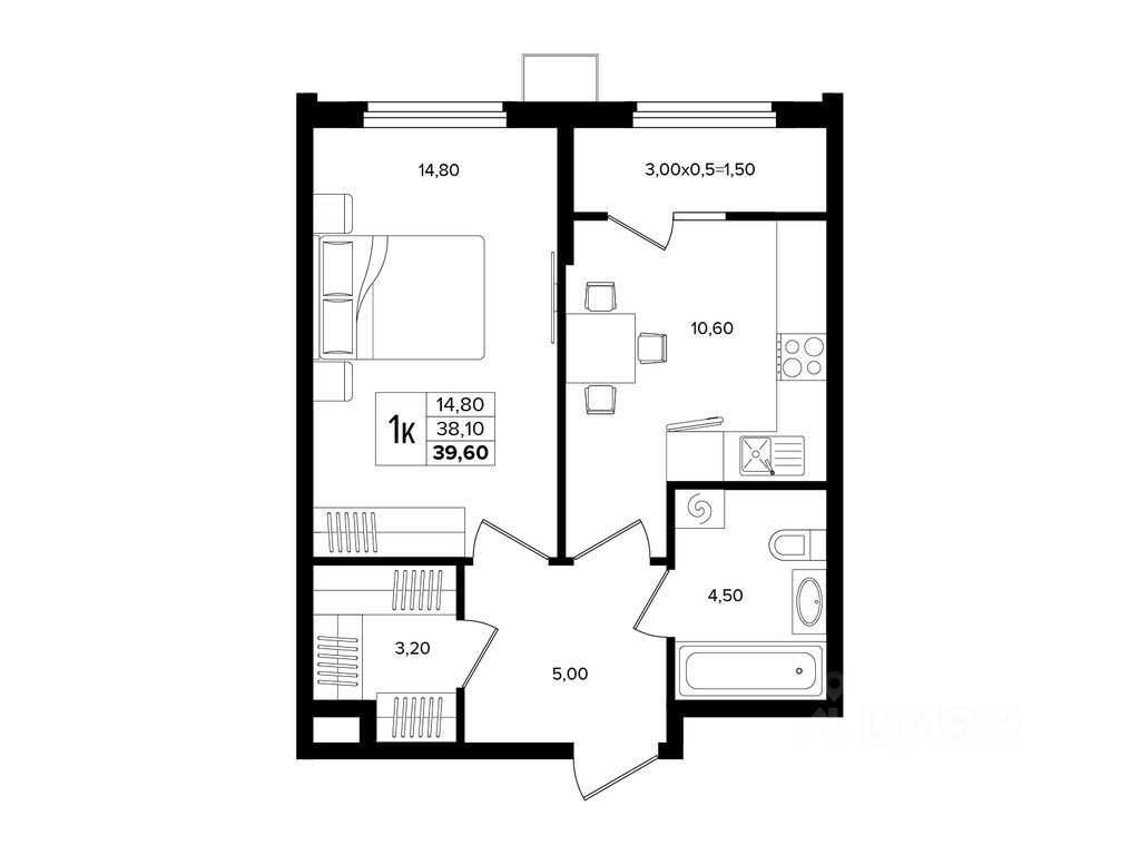 39,6 м²