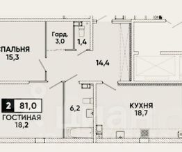индивидуальное отопление, теплые полы Общая площадь квартиры составляет 81 кв. м, кухня — 18 кв. м. Квартира находится на 4 этаже 16-этажного дома. Окна выходят как на улицу, так и во двор