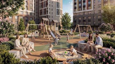 На территории приватного двора "Лермонтов Парк" будут высажены деревья и кустарники, обустроены спортивные, детские и прогулочные площадки. Отдельно расположится парковка, зона тихого отдыха, парковое пространство. Около 50% детских площадок займет озеленение.