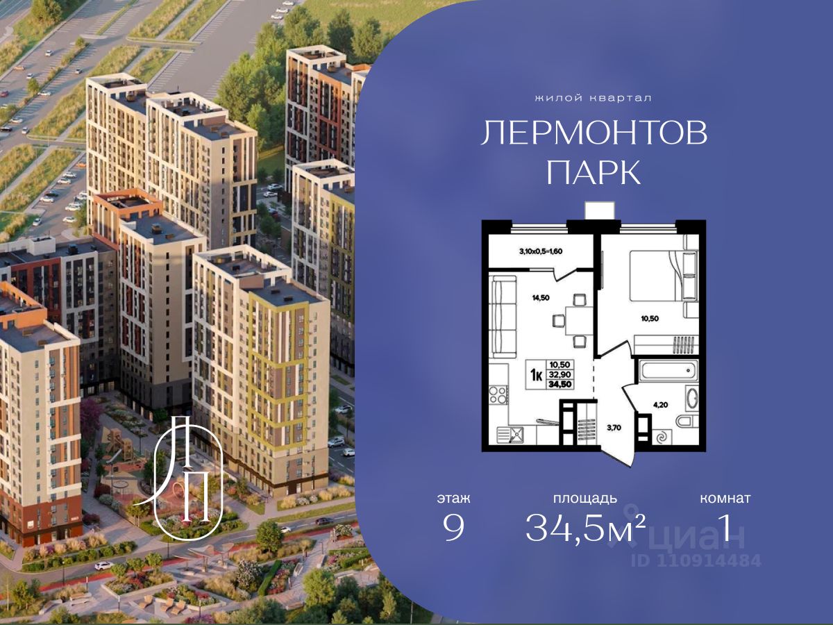 В продаже 1-комнатная квартира квартира площадью 34.50 кв. м, расположенная на 9 этаже, в новом жилом комплексе "Лермонтов Парк". Квартира сдается с черновой отделкой. Проект от застройщика PARADE Development находится в Ставропольском крае, на территории поселка Джуца, в окружении развитой курортной инфраструктуры.