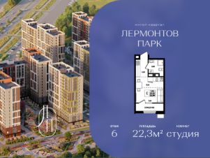 В продаже студия квартира площадью 22.30 кв. м, расположенная на 6 этаже, в новом жилом комплексе "Лермонтов Парк". Квартира сдается с черновой отделкой. Проект от застройщика PARADE Development находится в Ставропольском крае, на территории поселка Джуца, в окружении развитой курортной инфраструктуры.