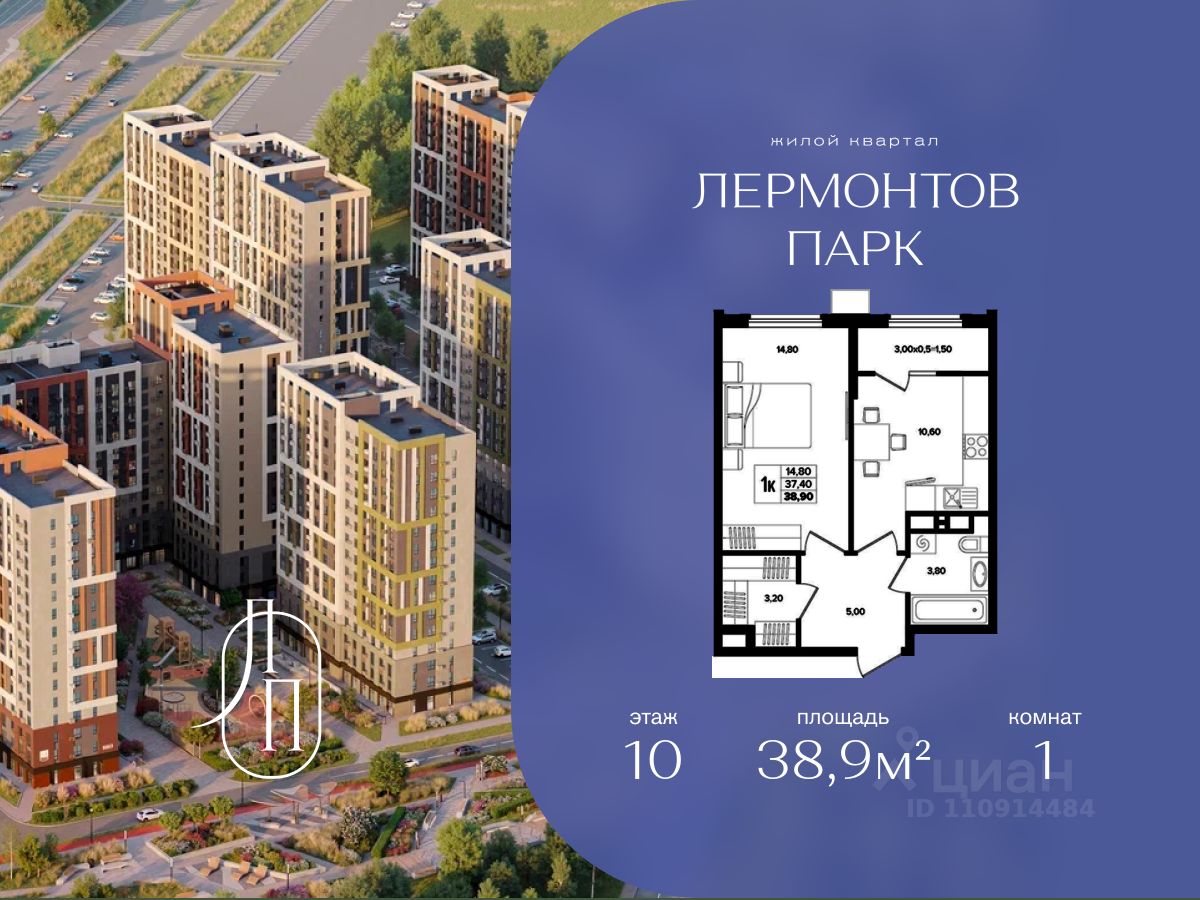 В продаже 1-комнатная квартира квартира площадью 38.90 кв. м, расположенная на 10 этаже, в новом жилом комплексе "Лермонтов Парк". Квартира сдается с черновой отделкой. Проект от застройщика PARADE Development находится в Ставропольском крае, на территории поселка Джуца, в окружении развитой курортной инфраструктуры. Жилой комплекс "Лермонтов Парк" в Ставропольском крае - это уникальный проект, объединяющий в себе богатые природные ресурсы Кавказа, хорошую транспортную доступность и близость к развитой городской инфраструктуре. Дома переменной этажности с множеством эргономичных планировок и потрясающими видами на доминанты Пятигорска и горный рельеф. Транспортная доступность • Остановка общественного транспорта в шаговой доступности. • 10-12 км от центра Пятигорска - ключевого делового, торгового и логистического центра Кавказских Минеральных Вод. • Прямой выезд к магистрали на улице Ореховой обеспечивает быстрый доступ к курорту на Ессентуках. • Гора Дубровка и Армянский лесной массив в 8-13 минутах на автомобиле. Архитектура, вдохновленная природой В составе проекта "Лермонтов Парк" возводится 7 литеров переменной этажности от 12 до 15 этажей. "Мокрый" фасад, светлые и теплые цветовые решения, ритмичное чередование ярких оттенков и оптимальный уровень остекления - каждая деталь жилого комплекса формирует динамичный и запоминающийся образ. Ландшафтное благоустройство На территории приватного двора "Лермонтов Парк" будут высажены деревья и кустарники, обустроены спортивные, детские и прогулочные площадки. Отдельно расположится парковка, зона тихого отдыха, парковое пространство. Около 50% детских площадок займет озеленение. Инфраструктура Просторный паркинг на 1758 машино-мест. Большая парковая зона с велосипедными и прогулочными дорожками. Стильные входные группы, оборудованные пандусами и понижающими площадками для маломобильных жителей. Туристические базы, центр города и живописные маршруты в окружении гор - в пределах 15-25 минут на машине.