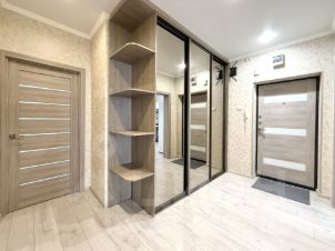 ОСТАЁТСЯ МЕБЕЛЬ И ТЕХНИКА — кухонный гарнитур, духовой шкаф, варочная панель, вытяжка, шкаф-купе в прихожей, диван в гостиной, сплит-система, шкаф и кровать в спальне, шкаф на лоджии. Можно заехать и жить без дополнительных вложений.