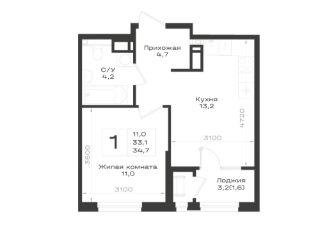 34,7 м²