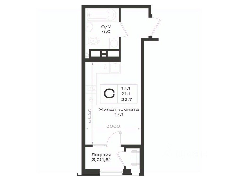 Общая площадь22,7 м²