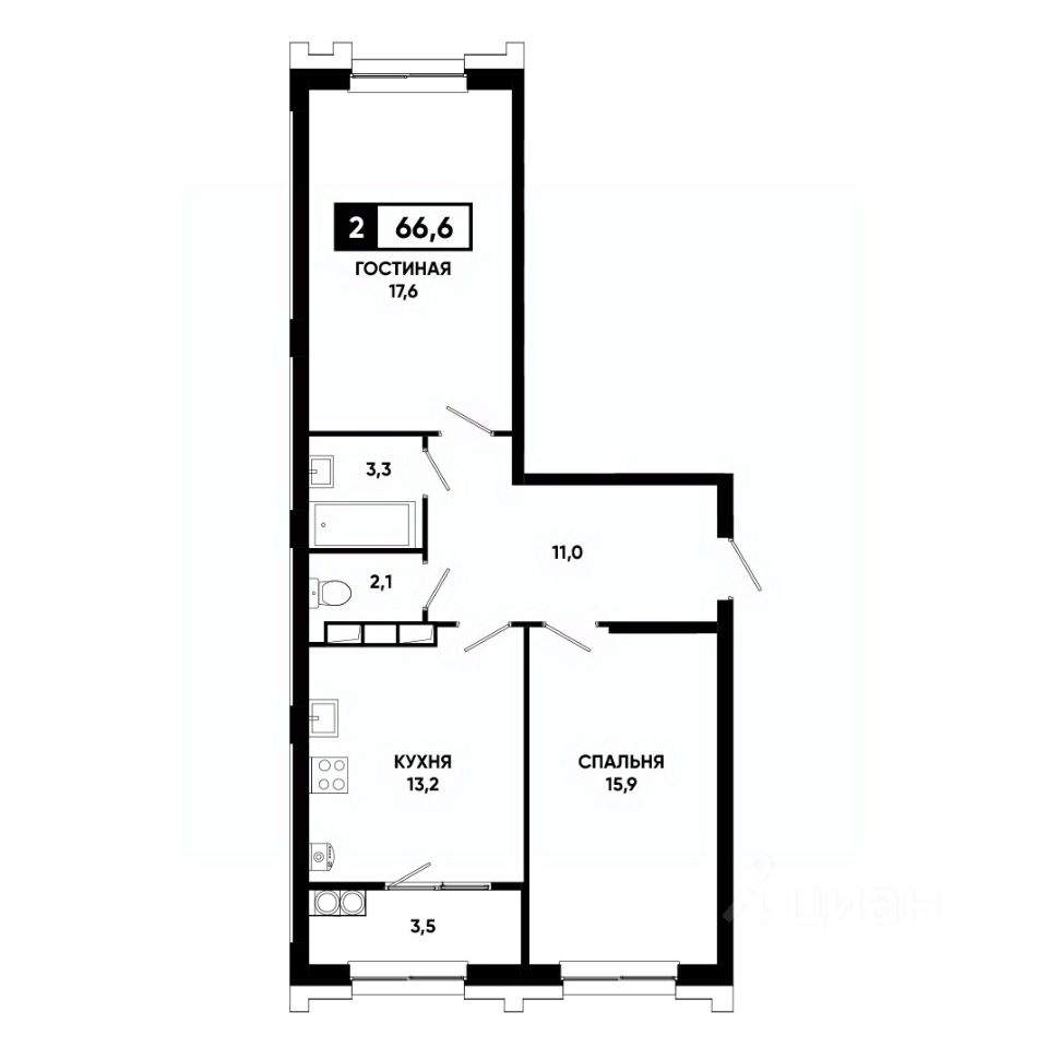 Общая площадь66,6 м²