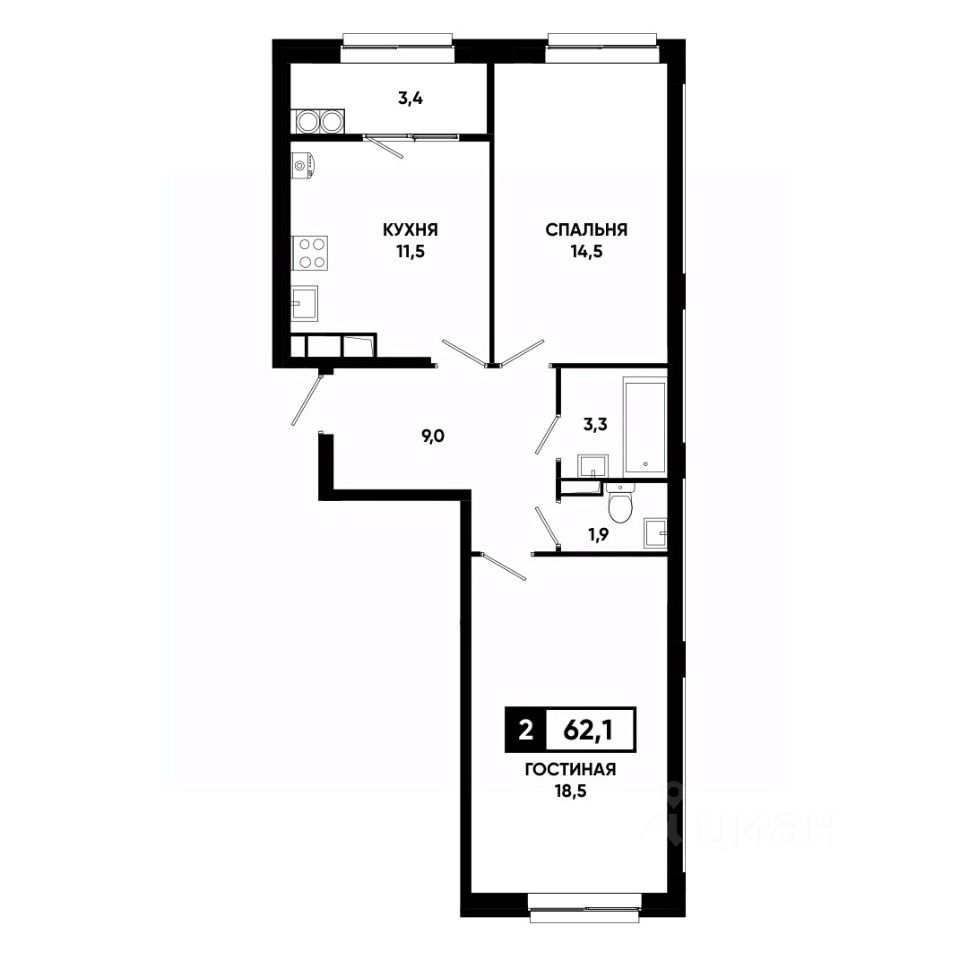 Общая площадь62,1 м²