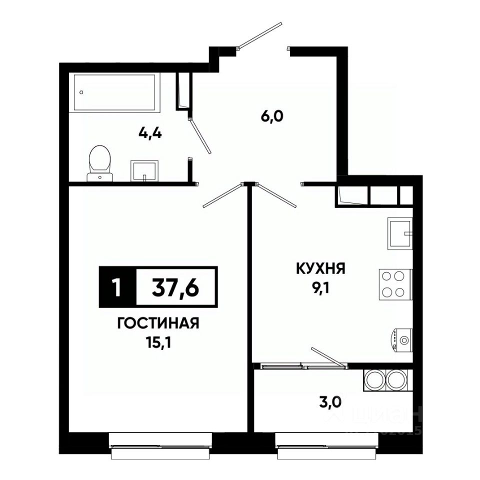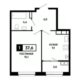 Общая площадь37,6 м²