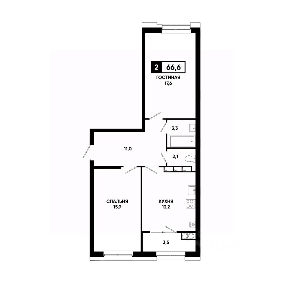 Общая площадь66,6 м²