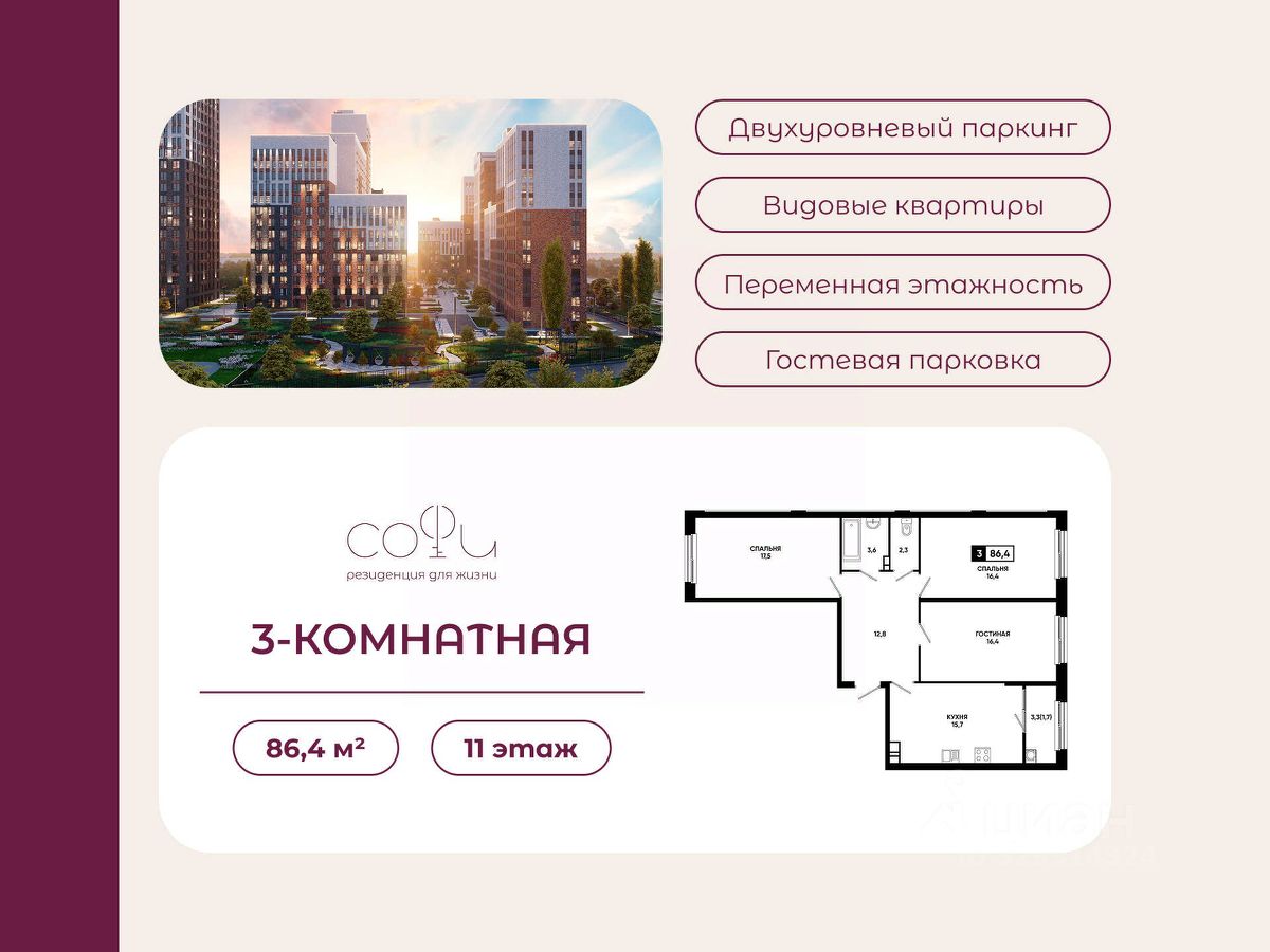 3-комнатная квартира в ЖК "Софи" — идеальный выбор для большой семьи с комфортом и выгодой от надежного застройщика ЮгСтройИнвест. Хотите жить в стильном комплексе с улучшенной инфраструктурой и качественным строительством? ЖК "Софи" — это удобный и безопасный жилой квартал с современными 3-комнатными квартирами, которые идеально подойдут для комфортной жизни. О застройщике: ЮгСтройИнвест — один из самых надежных российских девелоперов: строим по 214-ФЗ, сдаем дома срок в срок, делаем упор на благоустройство и комфорт. В Ставрополе компания уже реализовала десятки успешных кварталов. Планировка квартиры: — 3-комнатная квартира с функциональными и удобными комнатами для вашей семьи; — Большая кухня-гостиная, раздельные спальни, продуманное зонирование для вашего удобства. Для кого — это удобно: Семьям или парам, которым нужна квартира с раздельными комнатами; Молодым людям, кому нужна комфортная планировка по разумной цене; Тем, кто хочет сочетать тишину и удобство городской жизни; Тем, кому важен готовый дом, инфраструктура и безопасность. Жилой комплекс "Софи": — Закрытая территория, где нет машин, безопасно для детей и взрослых; — Зеленые зоны, спортивные и детские площадки — активный отдых на свежем воздухе; — Подземный паркинг, гостевые парковочные места для удобства владельцев автомобилей. Акции и предложения: Скидка до 5 000 ₽/м² для работников социальной сферы, медиков и студентов. Выгодная ипотека — ставка от 3,5% для семей. Условия покупки: — Доступная ипотека по всем популярным программам; — Рассрочка от застройщика; — Материнский капитал; — Дистанционная сделка; — Официальные договоры по 214-ФЗ. Преимущества покупки квартиры в ЖК "Софи": Приятные цены и выгодные акции; Просторные квартиры с современными планировками; Удобное расположение и отличная инфраструктура; Безопасность и комфорт для всей семьи. Напишите нам — подберем квартиру вашей мечты, расскажем о лучших вариантах и актуальных скидках! Не упустите ваш шанс начать новую жизнь в качественном, современном и комфортном доме от ЮгСтройИнвест. * Рендеры носят иллюстративный характер и демонстрируют возможный вариант оформления квартиры, не являясь ремонтом от застройщика.