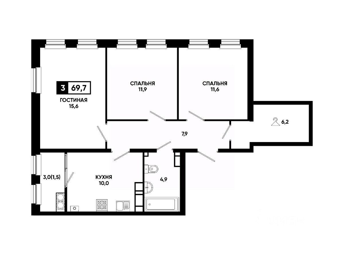Общая площадь69,7 м²