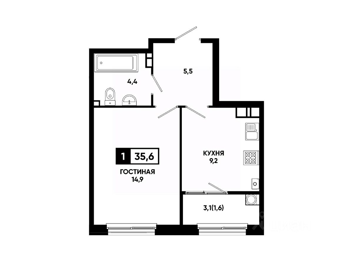 — Кухня-гостиная с возможностью зонирования;