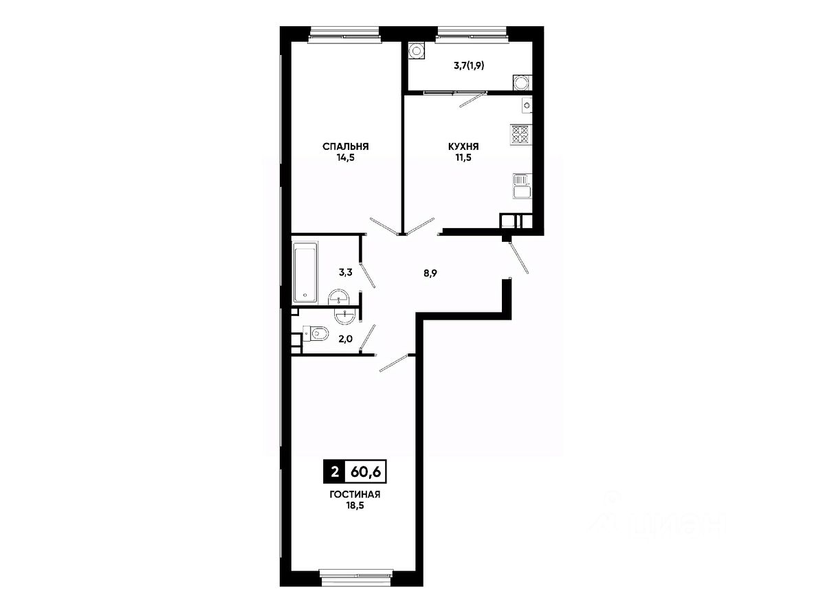 Общая площадь60,6 м²