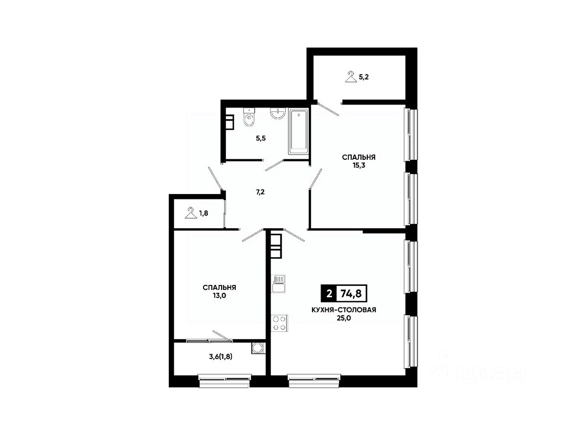 Общая площадь74,8 м²