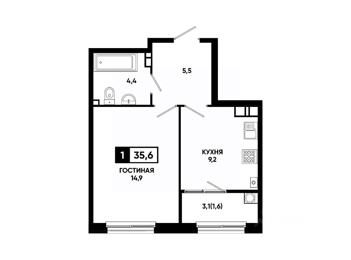 Общая площадь35,6 м²