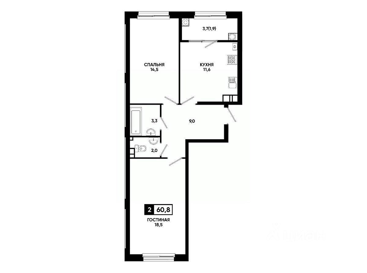 Общая площадь60,8 м²