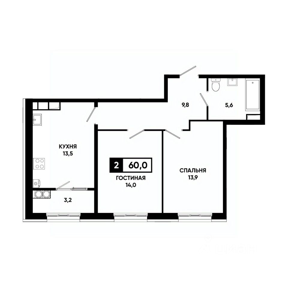 Общая площадь60 м²