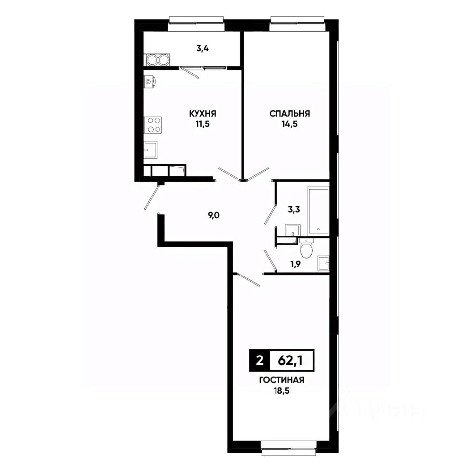 Общая площадь62,1 м²