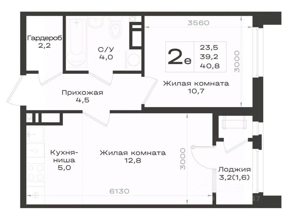 Общая площадь40,8 м²