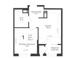 Общая площадь34,7 м²