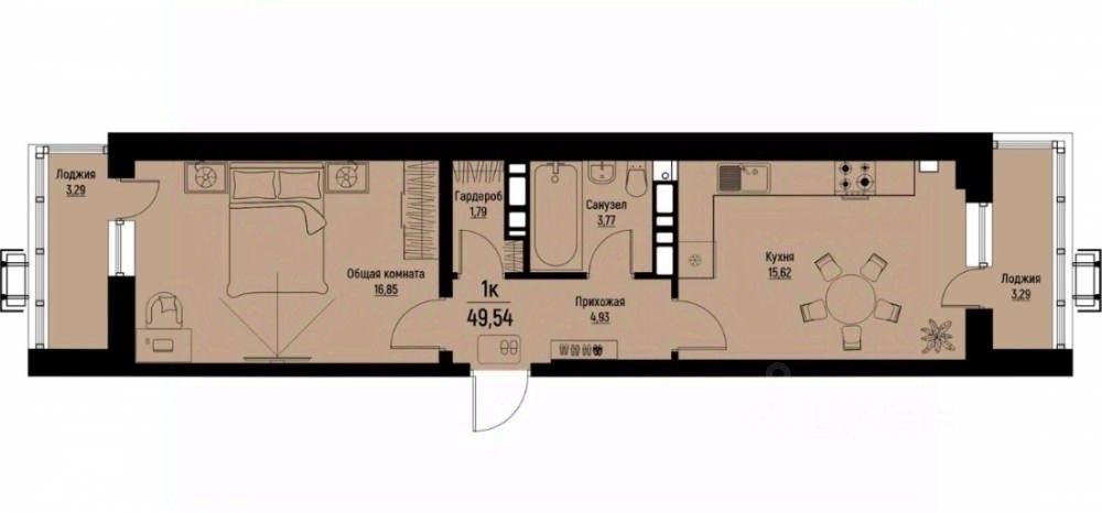 Продается 1-комнатная квартира в новостройке.