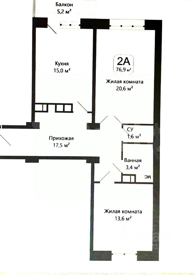 Общая площадь76 м²