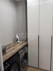 Постирочная: шкаф, сушильная и стиральная машины, гладильное место.
