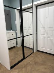 Прихожая: шкаф-купе с зеркалом, комод, место для верхней одежды, пуфик с отсеком.