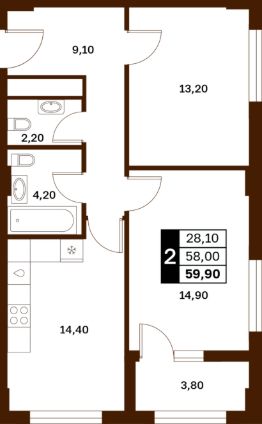 59,9 м²