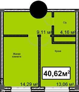 Общая площадь40,62 м²