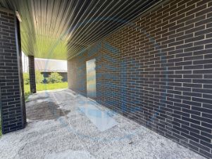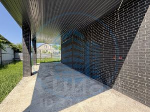 Во дворе бетонирована площадка для автомобиля и дорожки, отмостка вокруг дома, посажены деревья.