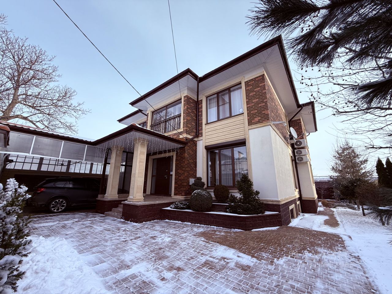 Двор выложен брусчаткой, имеется большой навес на две машины, въездные автоматические ворота. Задний двор с мангальной зоной. Уличное освещение, авто-полив, подобранный ландшафтный дизайн создает атмосферу единения с природой и позволяет забыть о ежедневной суете.