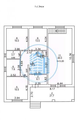 Планировка: холл с нишей под встроенный шкаф, просторная кухня-гостиная с выходом на террасу, два санузла и гардеробная, три изолированные спальни. Подвальное помещение.