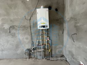 Двухконтурный газовый котел, радиаторы отопления, установлено две инсталляции ;