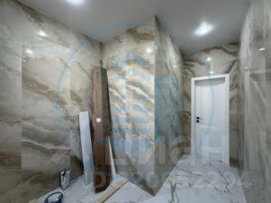 Современный ремонт в светлых тонах, установлена сантехника.