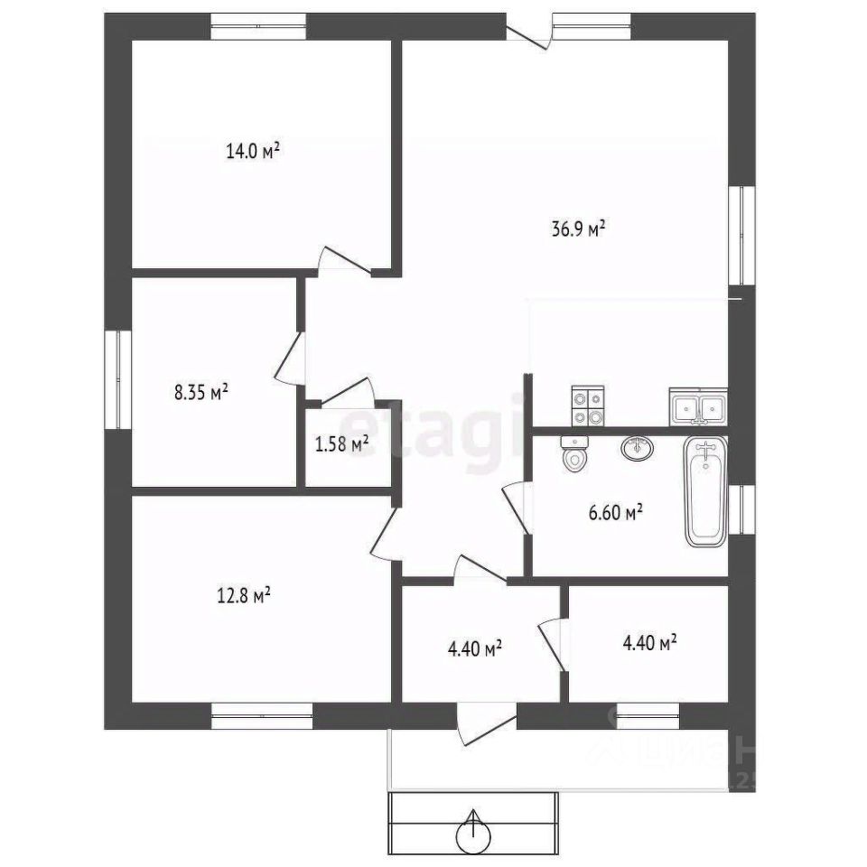В доме все помещения просторные: кухня - гостиная , холл , прихожая , коридор , отдельно котельная - гардероб , две спальных комнаты , санузел большой совмещенный , терраса , подвал - вход со двора.