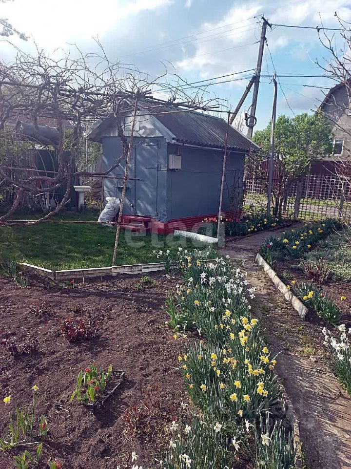 Стоит небольшой домик для хранения инструмента и отдыха в тени.