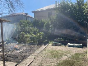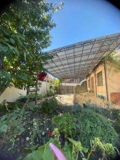 Территория благоустроенная, имеется навес, клумбы для цветов и небольшой сад с плодовыми деревьями и виноградом.