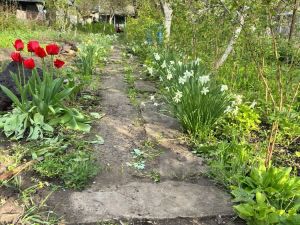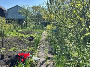 Участок 7х10 ровный, имеет множество насаждений: малина, клубника, смородина, ряд плодовых деревьев.