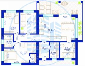 Просторная кухня-гостиная с выходом на террасу, три изолированные спальни, одна из которых мастер-спальня.