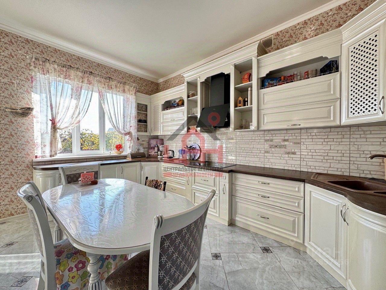 светлая кухня с выходом на задний двор