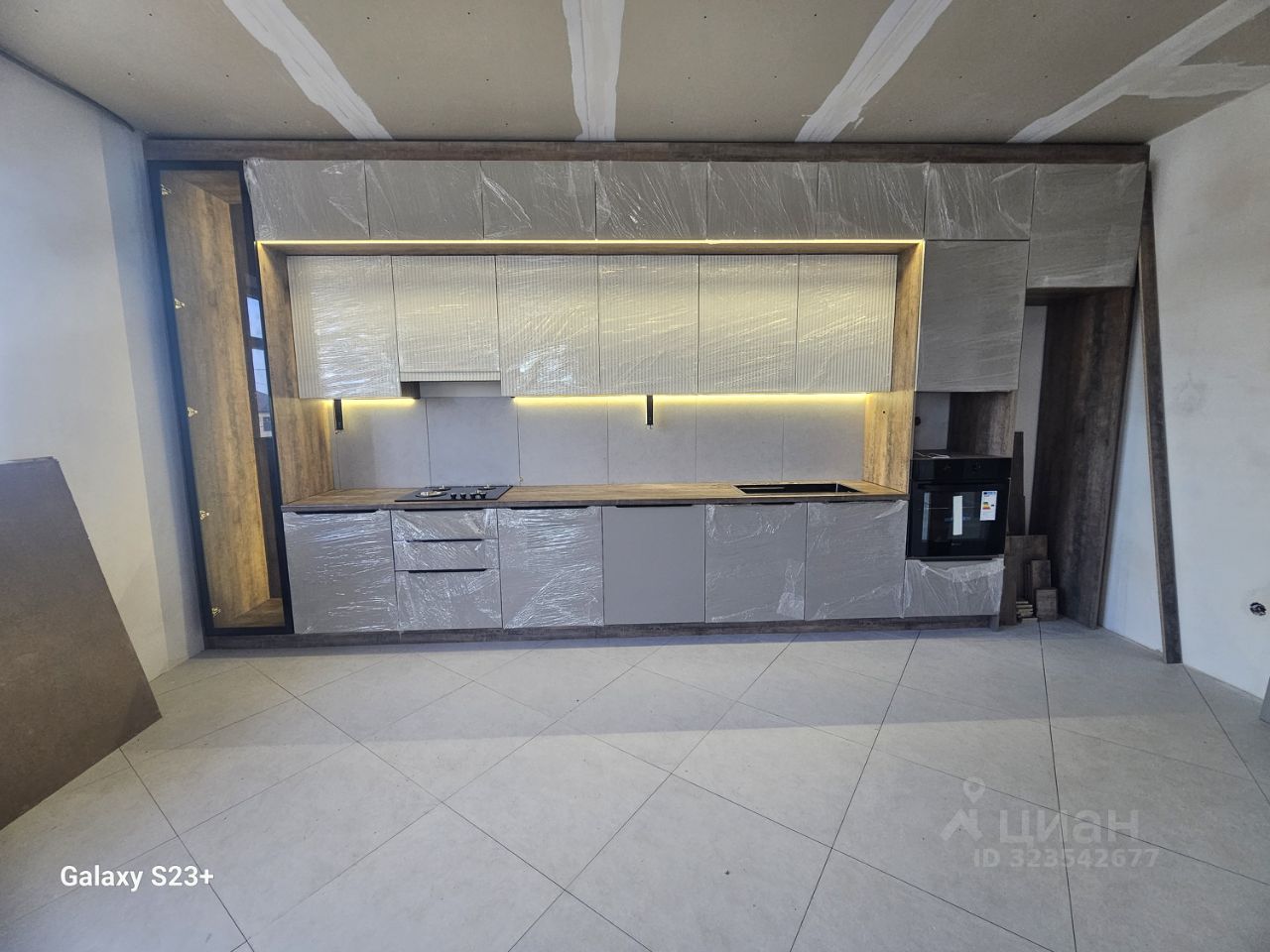 3)Кухонный гарнитур,интегрированный в натяжной потолок;