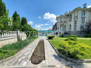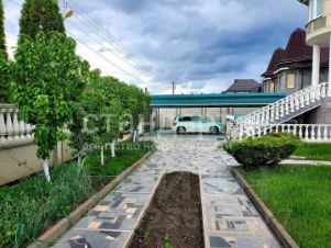 Во дворе дома сделан крытый заезд на несколько автомобилей с автоматическими воротами, бассейн, интересный ландшафтный дизайн с туями, декоративными кустарниками и зелеными насаждениями, а также молодыми фруктовыми деревьями. Рядом с мангальной зоной находится летняя кухня со всеми коммуникациями площадью 56 м2. Территория двора вымощена натуральным гранитом, по периметру участка забор отделан мраморной крошкой.