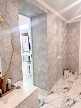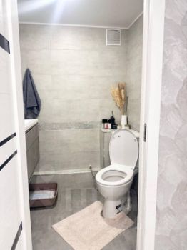 В доме две большие комнаты спальня и детская, плюс красивая лоджия, коридор, это на втором этаже. На первом этаже есть небольшая комната пустая, большая кухня, два коридора, туалет и ванна раздельные, котельная и прачечная, и есть кладовка, как небольшой подвал.