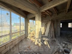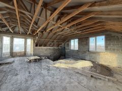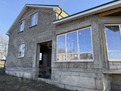 Земля в собственности. Дом в черновой отделке, окна профиль 70, стены керамзитные блоки, разрешение на строительство есть, канализация переливная, двор засыпан ПГС, есть 3 фазы на участке, газ во дворе, вода в доме, свет проведен в дом, межевание есть. На участке есть модульный домик (кабинет) теплые полы, вода, свет.